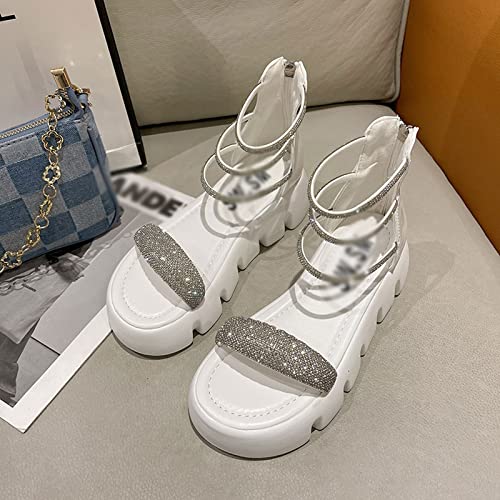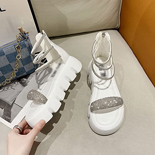 HCHGJKN Damessandalen Sandals Comfort Shoes for Women Heels Increasing Height Muffins shoe Outside Beach Rhinestone(38 EU)