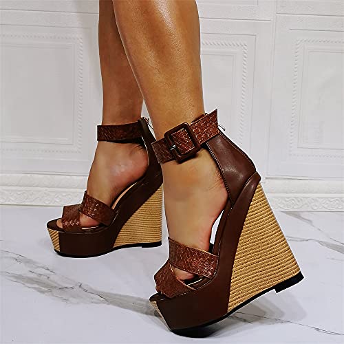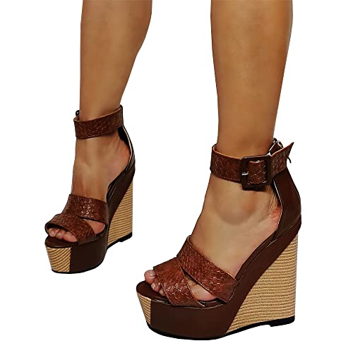 High Heels Women’s Wedge Sandals Ankle Strap Open Toe Party Dress Shoes-Brown||39 GaZjU