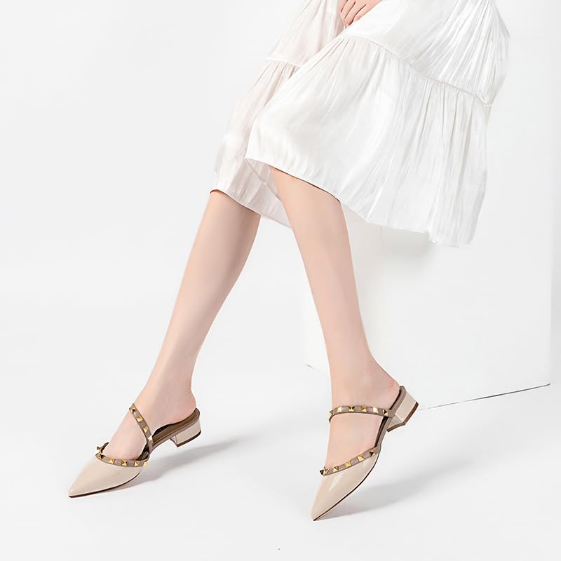 LXJYDN Sandal Women Fashionable Rivet Pointed Toe Sandals, Versatile Thick Heel Mules Sandals