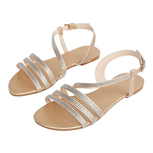 Metallic Sandalen Voor Vrouwen Platte Strass Zomer Schoenen Strand Vrouwen Teen Ademend Riem Open Sandalen Gesp Vrouwen Sandalen Vrouwen 4d