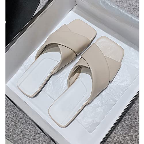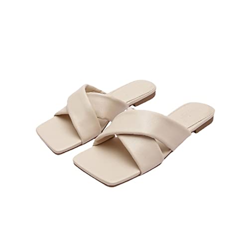 MOEIDO Damespantoffels Summer Cross Leather Sandals Women Slippers Outdoor Comfort Beach Shoes Fashion Slip On Ladies Low Heel Sandals