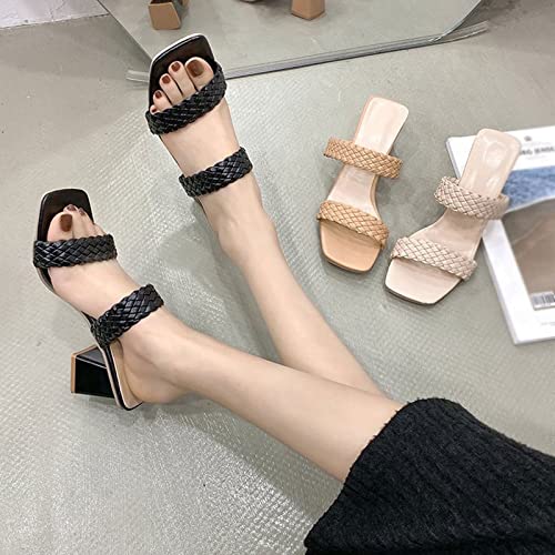 XCVFBVG Mode-sandalen voor dames Fashion Summer Women Sandals Ladies Shallow Mouth Colorblock High Thick Shoes Middle Heel Ladies Slippers Plus Size
