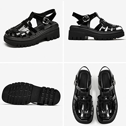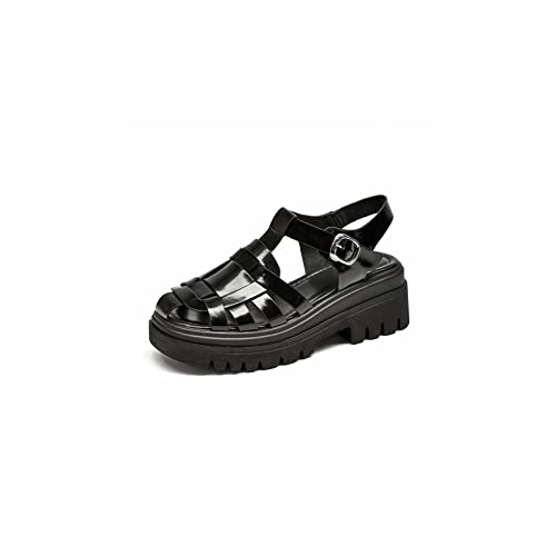 ZXSXDSAX sandalen voor dames Sandals Platform Women Woven Design Strap Wedges Summer Ladies Shoes(Color:Schwarz,Size:35 EU)